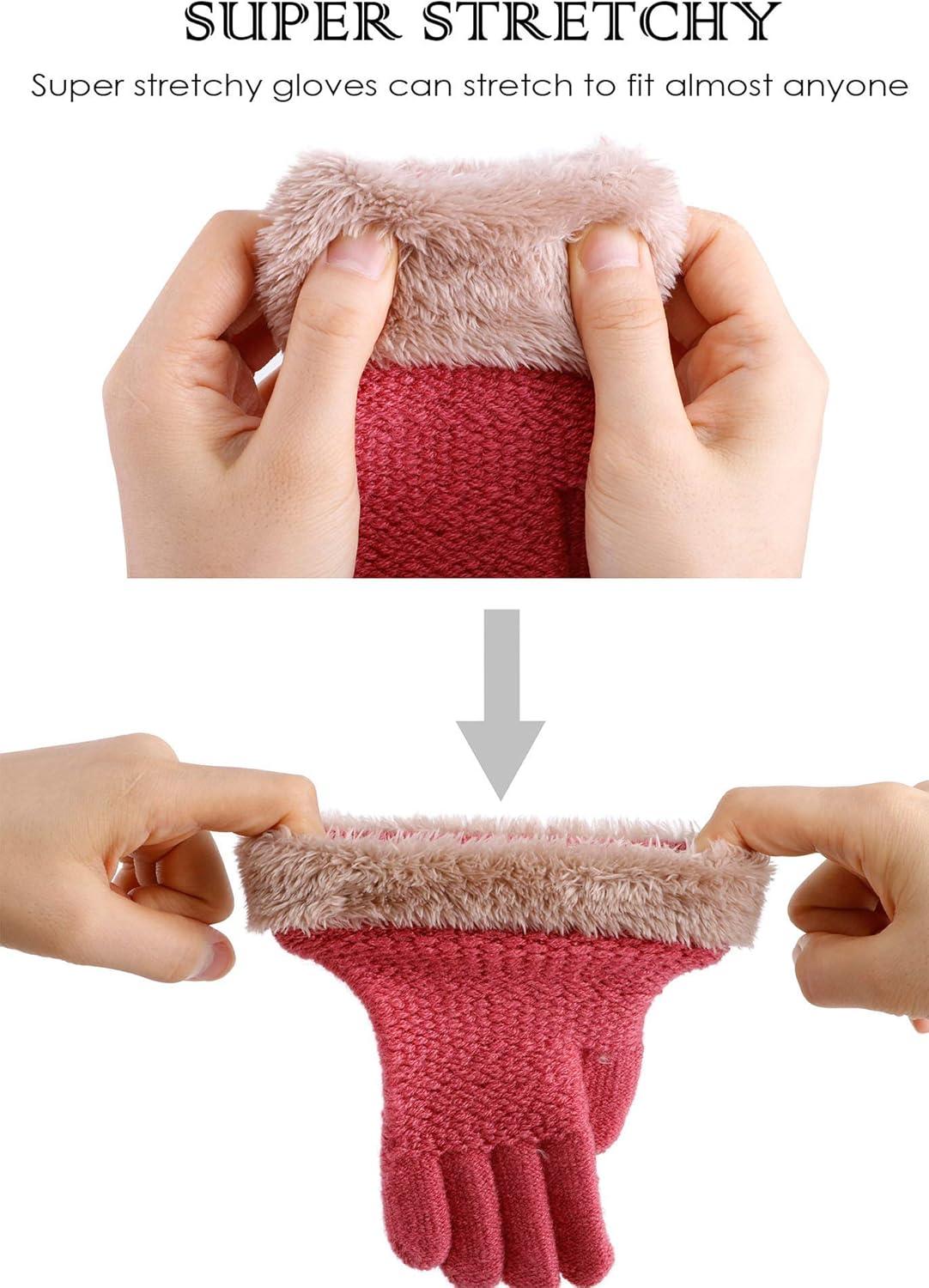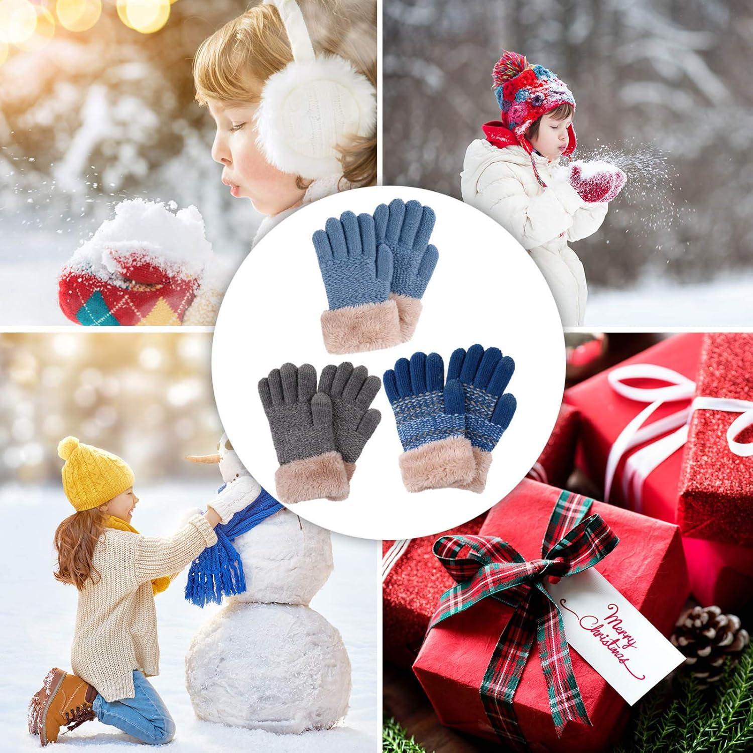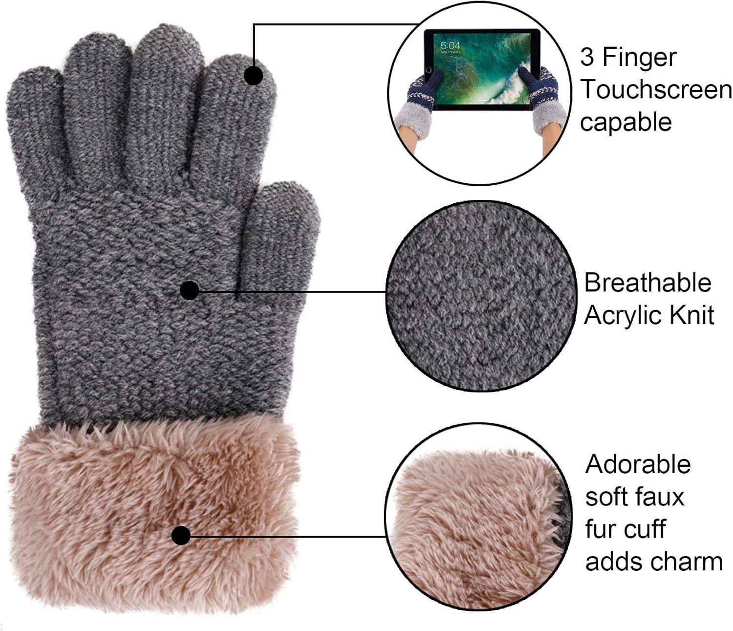 Verabella Boys Kint Gloves Girls Stretch Touchscreen Winter Knit Gloves w/Fur Cuff, Heather/Blue/Teal