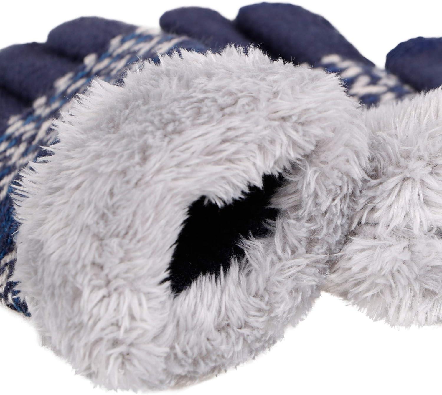 Verabella Boys Touchscreen Gloves 2 Pack Kids Magic Stretch Knit Gloves w/Fur Cuff, Heather/Blue